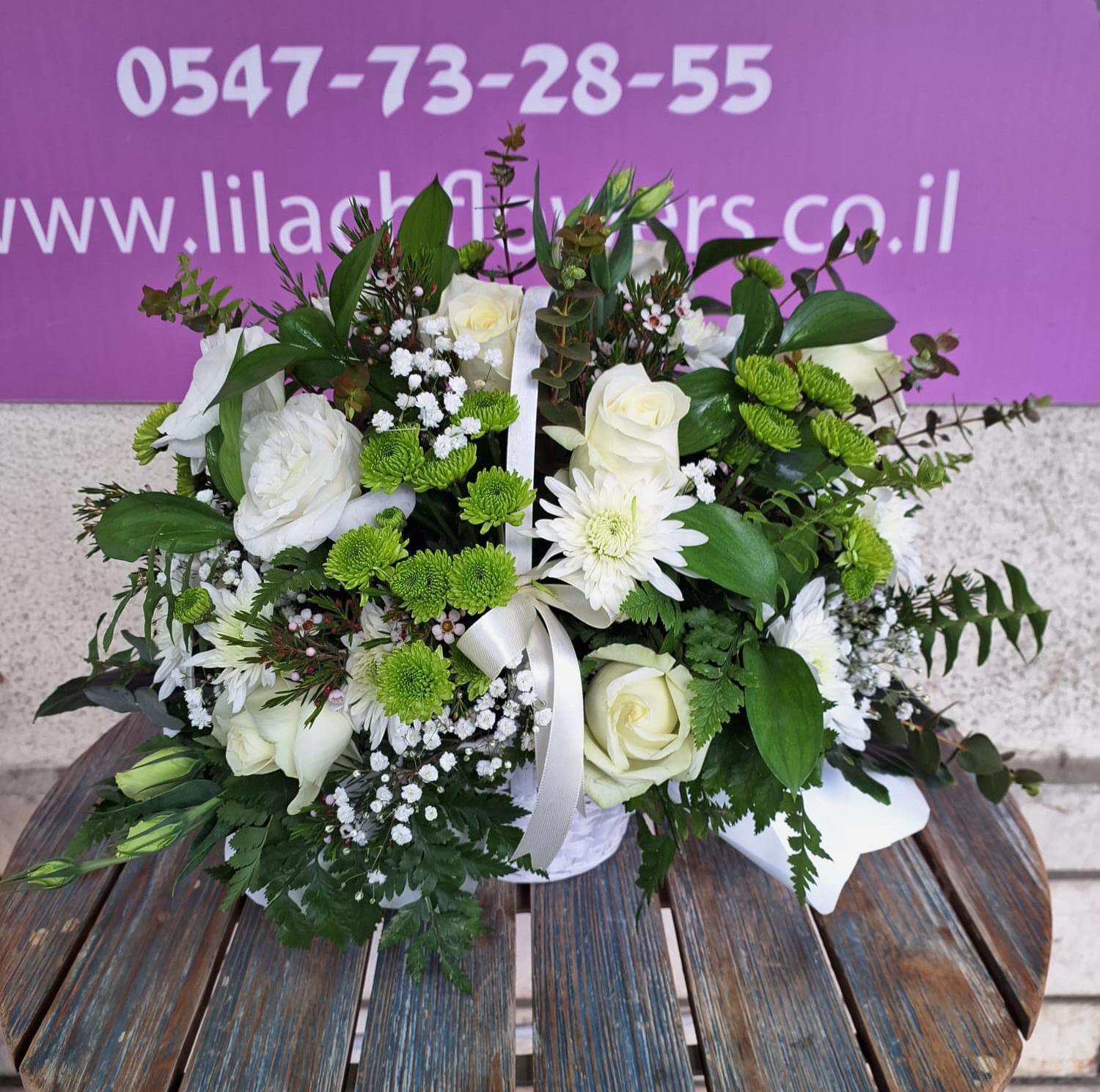 סלסלת פרחים לבנים בעיצוב קלאסי